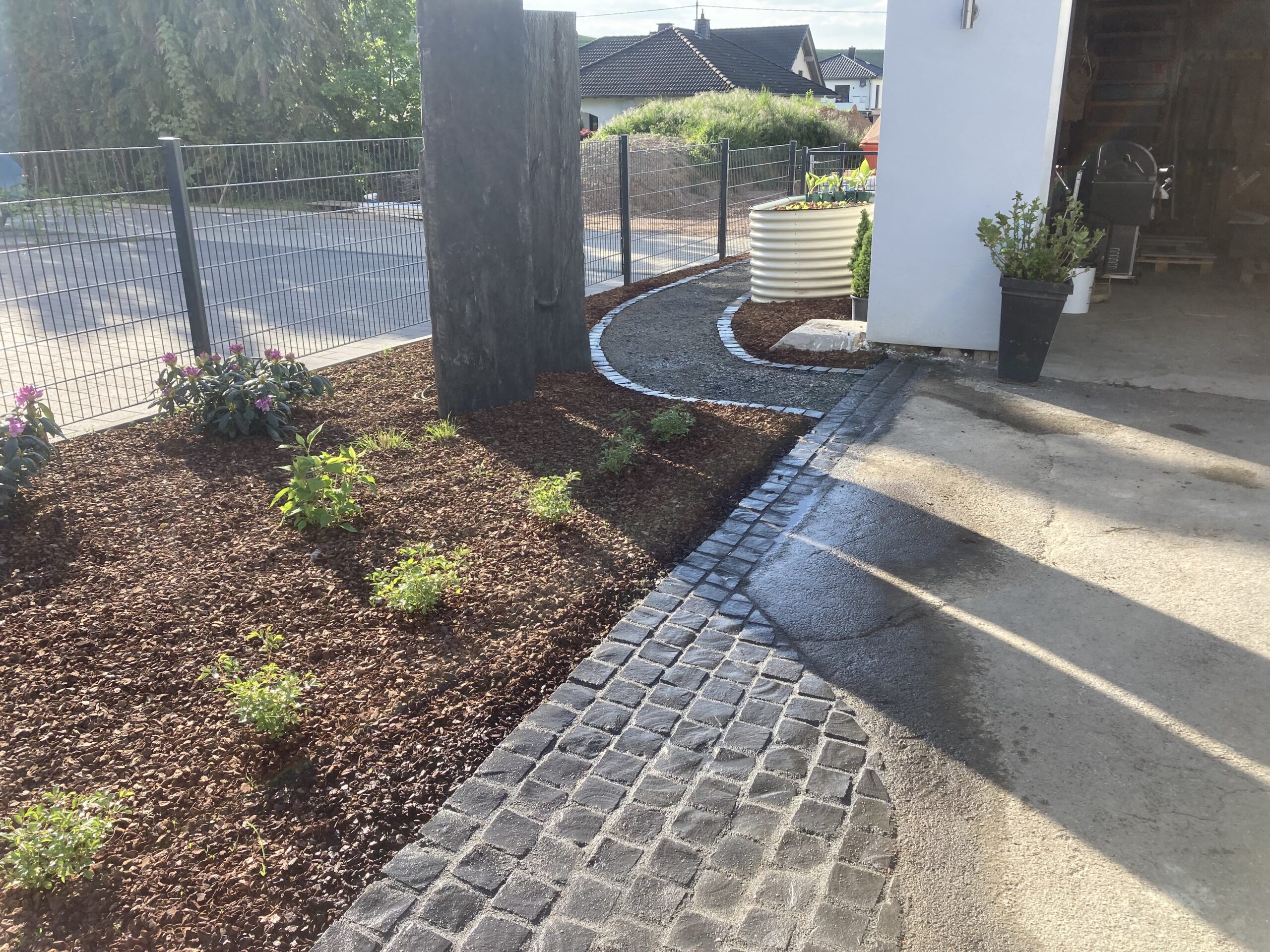 Wir übernehmen für Sie die Gartenneuanlage, professionellen Wege- und Terrassenbau, hochwertige Pflasterarbeiten, Zäune und Sichtschutz sowie Rasen- und Pflanzflächen.